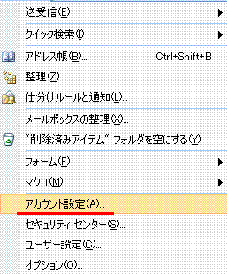 「ツール」から「アカウント設定」をクリックします。