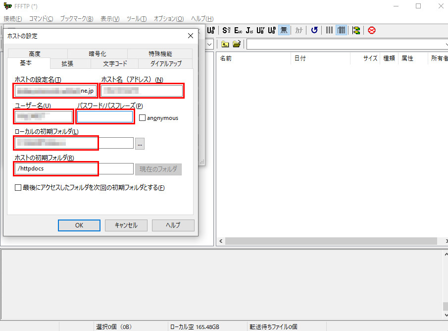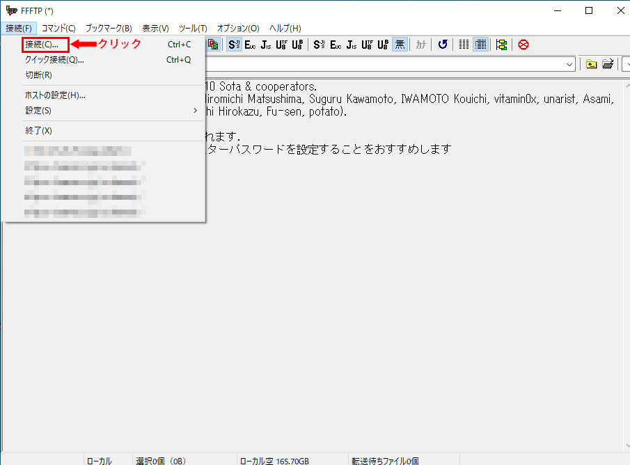 - FFFTPインストールが終わったらFFFTPを起動します。