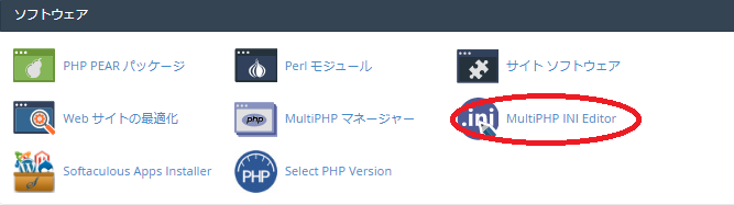 1.cPanelにログインし「ソフトウェア」>「MultiPHP INI Editor」をクリックします。