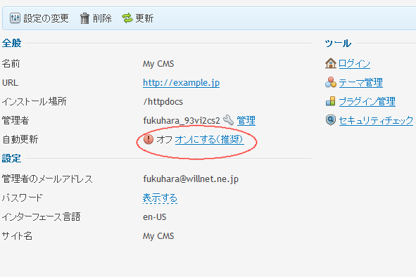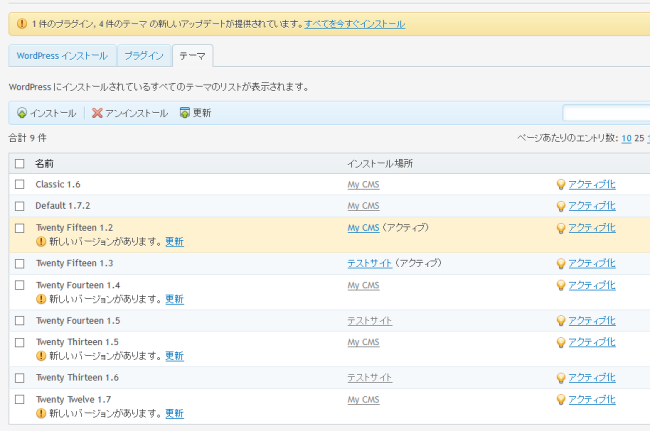 プラグイン・テーマは自動更新されませんので、定期的に確認して更新しておくことをお勧めします。