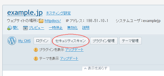 Plesk12は、WordPressのセキュリティチェックと対策を簡単に行えるようになっています。