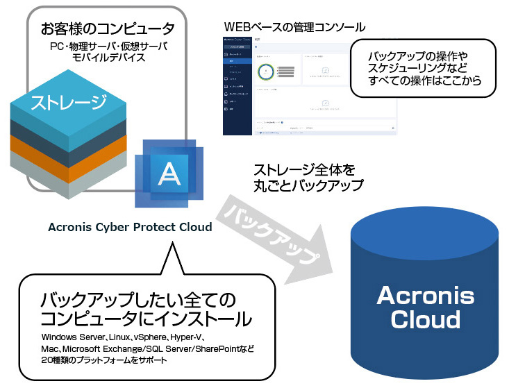 「Acronis Cyber Protect Cloud」は「イメージバックアップ」を中心としたデータ保護ソリューションです。
