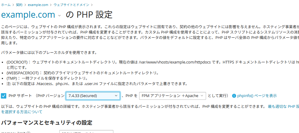 • Plesk サーバでは PHP バージョンを簡単に切り替えできます。新規に PHP アプリケーションを導入する場合は、