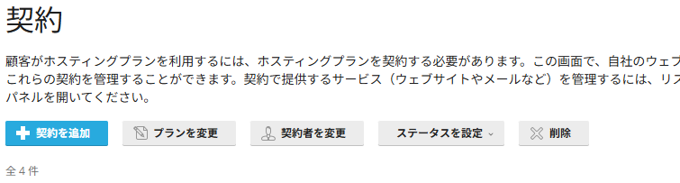※この「契約」は、Pleskのホスティング管理上の用語(英語版では「Subscription」)で、ウイルネットの契約を意味しません。