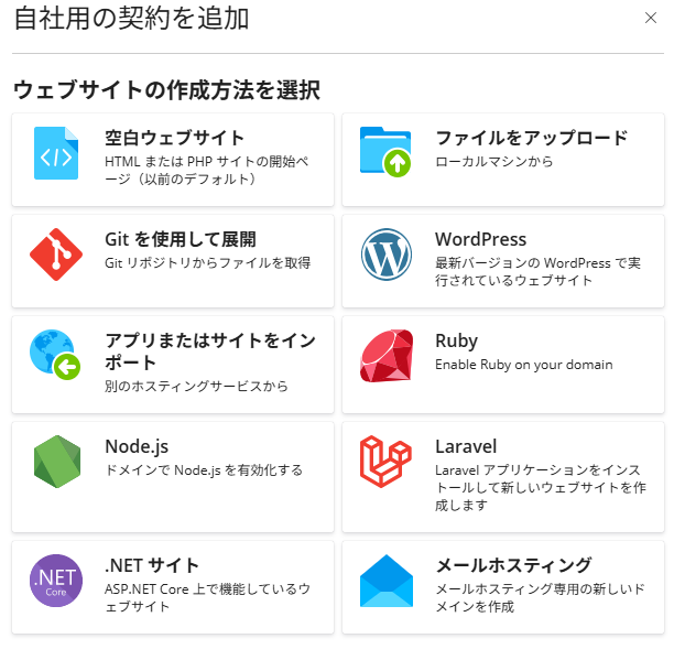 (2) ウェブサイトの作成方法で「Node.js」を選択