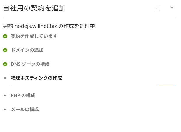 (4) ホスティング設定の作成が始まります。
