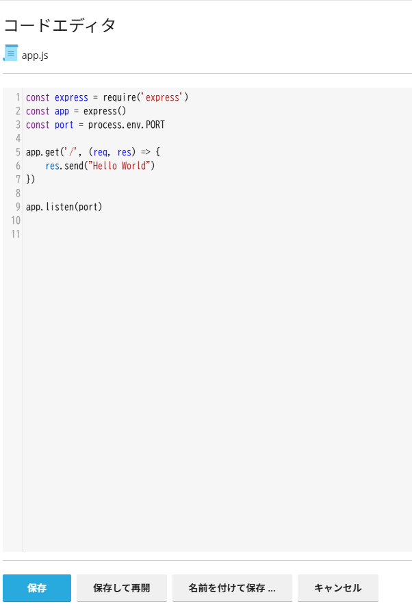 • ポート番号は、process.env.PORT の値を必ず設定してください。