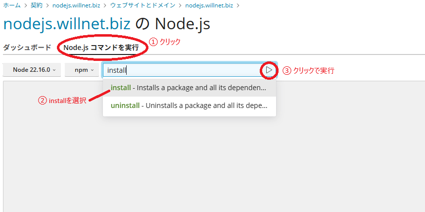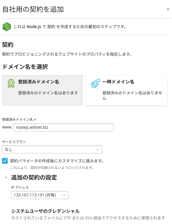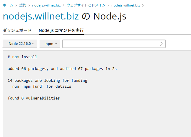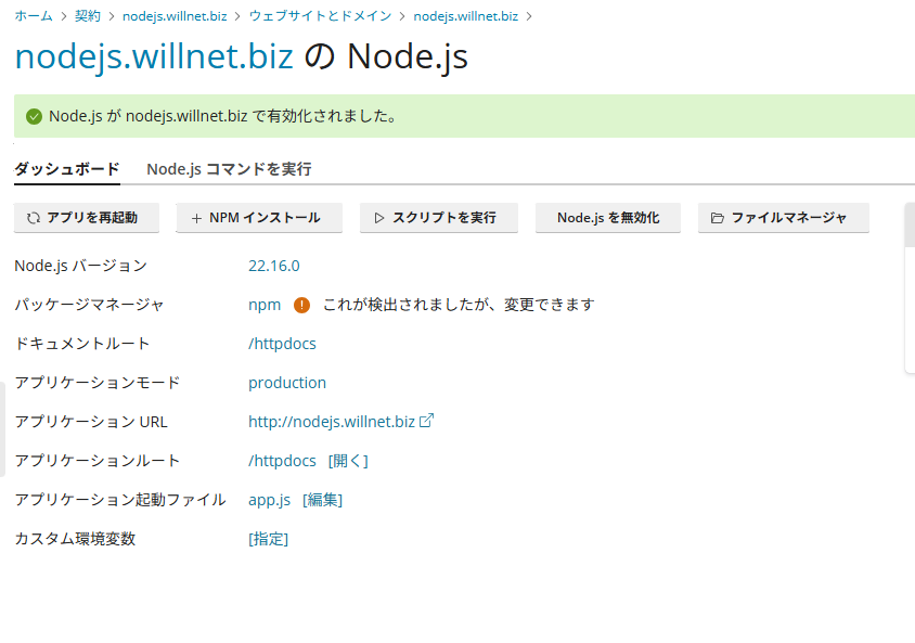 ※ここまでは通常のホスティング設定と同じです。ここからNODE.js環境の構築となります。
